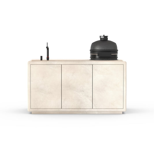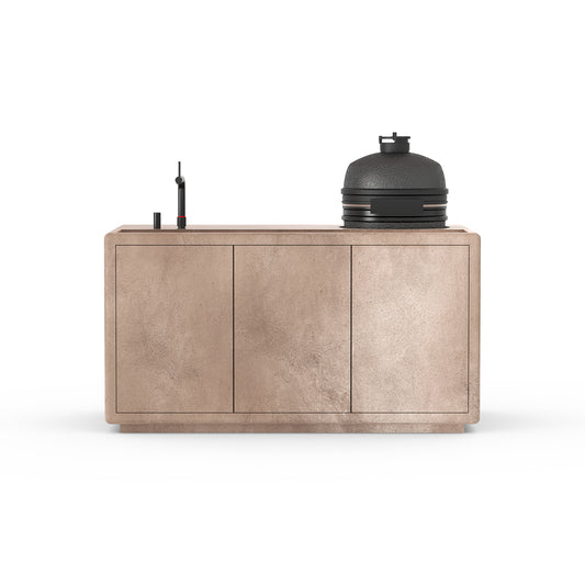 De Compatto Buitenkeuken is niet zomaar een buitenkeuken, maar een design statement. Met de hand vervaardigd en afgewerkt met luxueus, weerbestendig microbeton en uitgerust met topmerken als Gozney, Fhiaba, Quooker en Bastard, belichaamt hij een leven van verfijning, stijl en culinaire perfectie. Voor wie niets minder dan het beste accepteert.