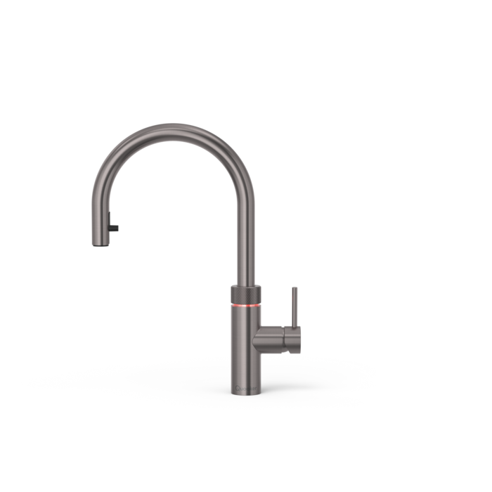 De Flex is de enige Quooker-kraan met een handige, flexibele uittrekslang. Naast warm, koud en kokend water kan de Flex ook koel bruisend en gefilterd water geven, als je hem combineert met de Quooker CUBE. Dankzij de kokendwaterstop kan de Flex geen kokend water geven als de slang uitgetrokken is.